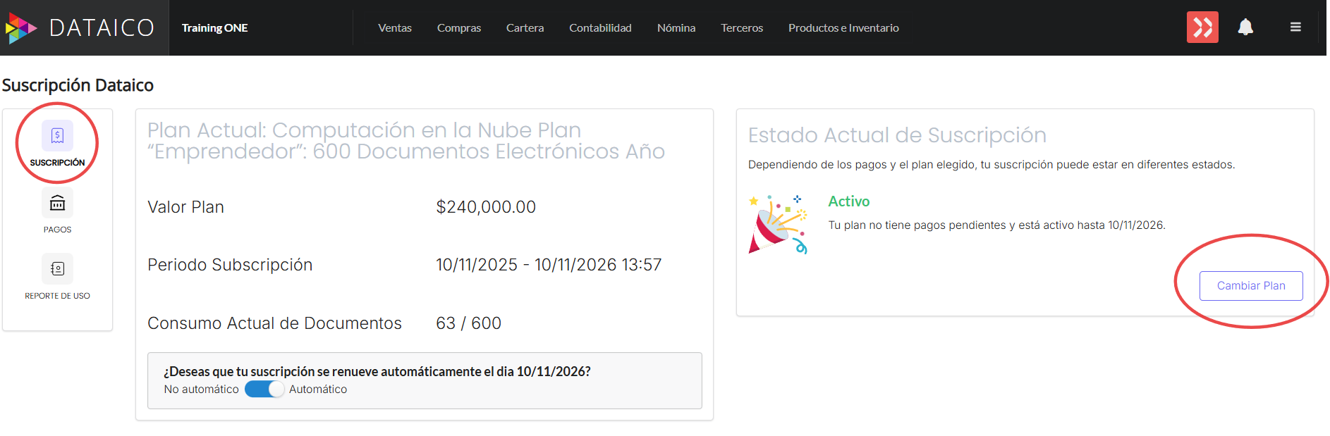 ¿Cómo cambiar o adquirir un plan en Dataico?