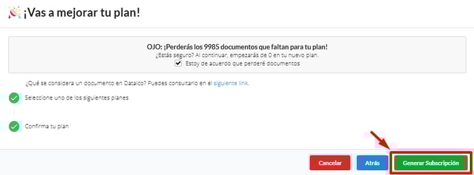 - Si tienes un plan activo, ten en cuenta que los documentos no utilizados no serán acumulables.