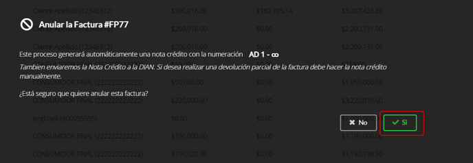 4. El sistema generará automáticamente una nota crédito para registrar la anulación.