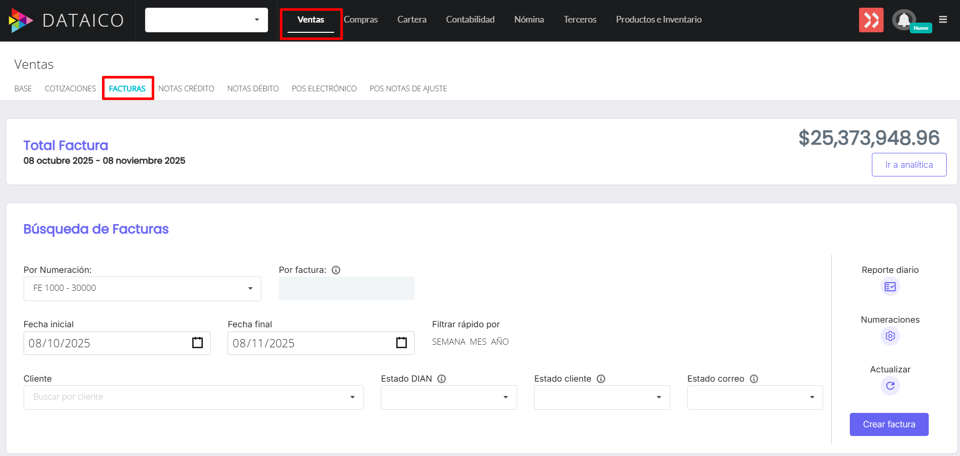 Para buscar facturas por tercero sigues el siguiente paso a paso:
