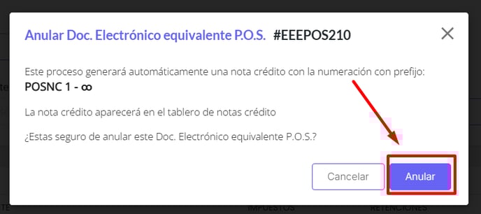 - Paso a paso para anular un documento equivalente POS electrónico.
