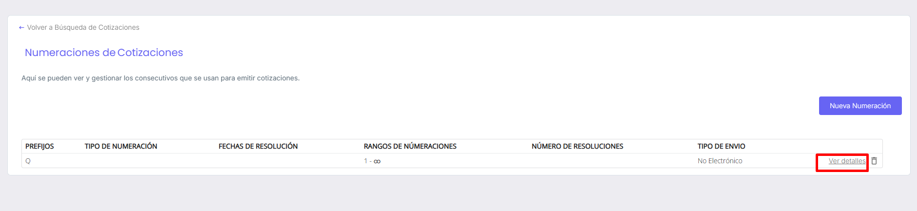3. Selecciona la numeración que estás utilizando y haz clic en Ver detalles para editarla.