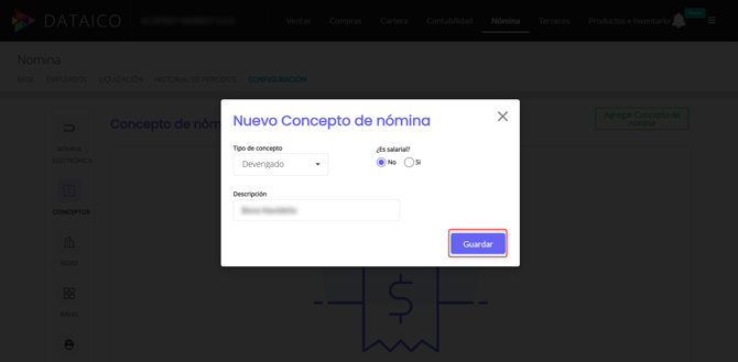 Cómo crear otros conceptos de nómina en Dataico