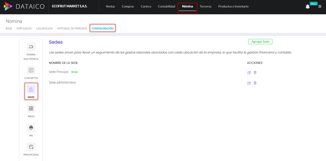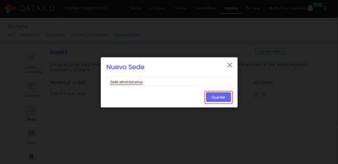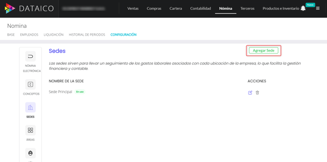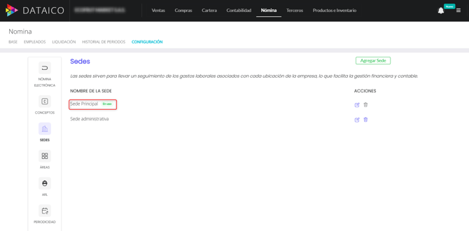 1. Ingresa al módulo Nómina y selecciona Configuración > Sedes.
