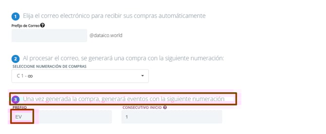Los eventos de recepción generados en Dataico deben tener una numeración específica. Te recomendamos utilizar el prefijo "EV" para mantener una estructura que se pueda diferenciar de los demás consecutivos que tengas en el sistema.