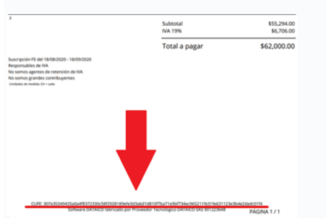2. Copiar el CUFE que aparece en el PDF de la factura