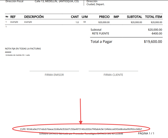 2. Copiar el CUFE que aparece en el PDF de la factura.