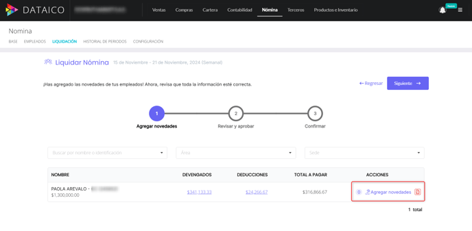 9. Luego de cargar las novedades de todos los empleados en este periodo, solo tendrás que confirmar el valor y aprobar.