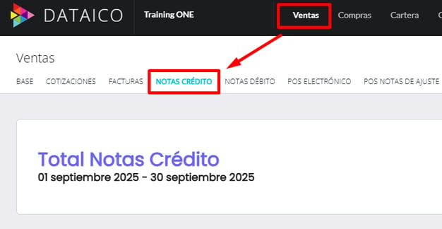 1. Ingresas al módulo de ventas en la opción notas crédito.