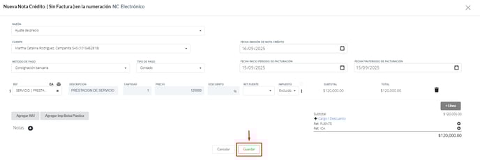 NOTA CRÉDITO A FACTURA NO REFERENCIADA.