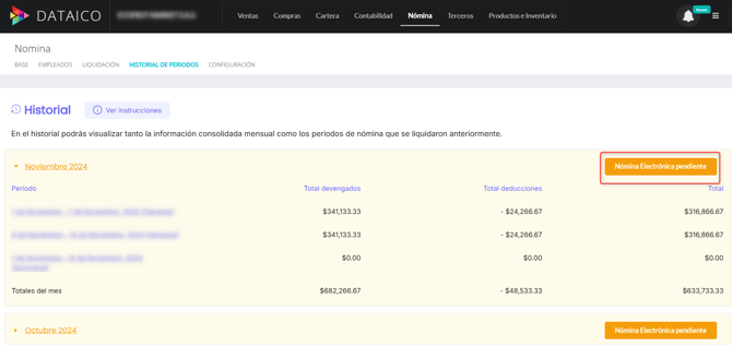 1. Ingresa al módulo de nómina y selecciona el submódulo Historial de Periodos.
