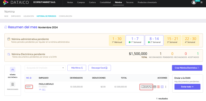 2. Haz clic sobre el botón de nómina electrónica del mes correspondiente para abrir los periodos disponibles.