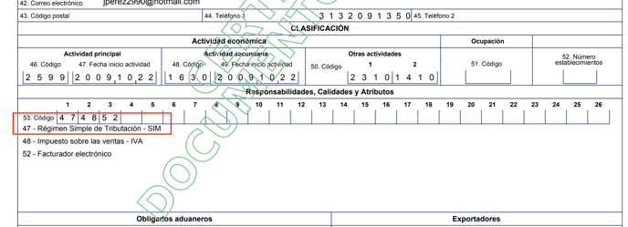 Para este caso, al revisar dentro del campo de responsabilidades se puede encontrar que se encuentra la responsabilidad 47 - Régimen simple de tributación.