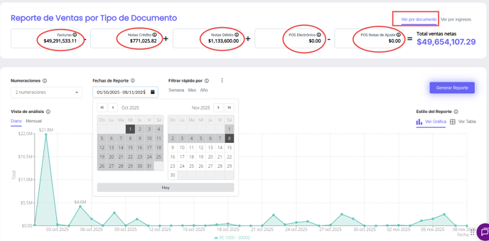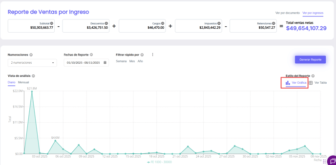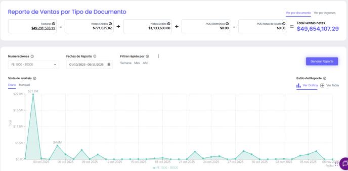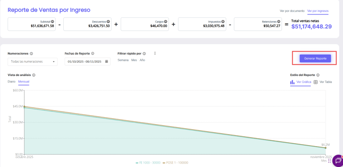 Cada vez que se realice un cambio (fecha, numeración, tipo de vista), es necesario hacer clic en el botón “Generar Reporte” para actualizar la información reflejada.