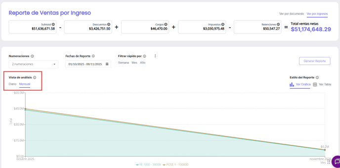 Adicionalmente, es posible alternar entre visualización diaria o mensual, según el nivel de detalle deseado.