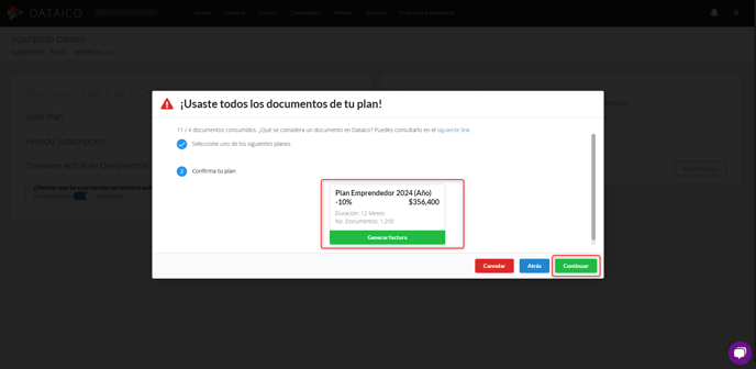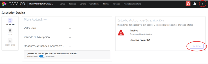 Si tu plan de Dataico ha vencido, puedes renovarlo o elegir uno nuevo fácilmente desde la plataforma.