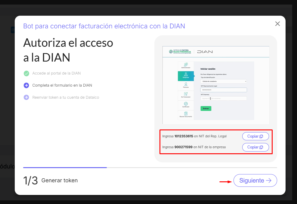 3. Genera un Token: Deberás Seguir las instrucciones para generar un token de acceso al portal de la DIAN.